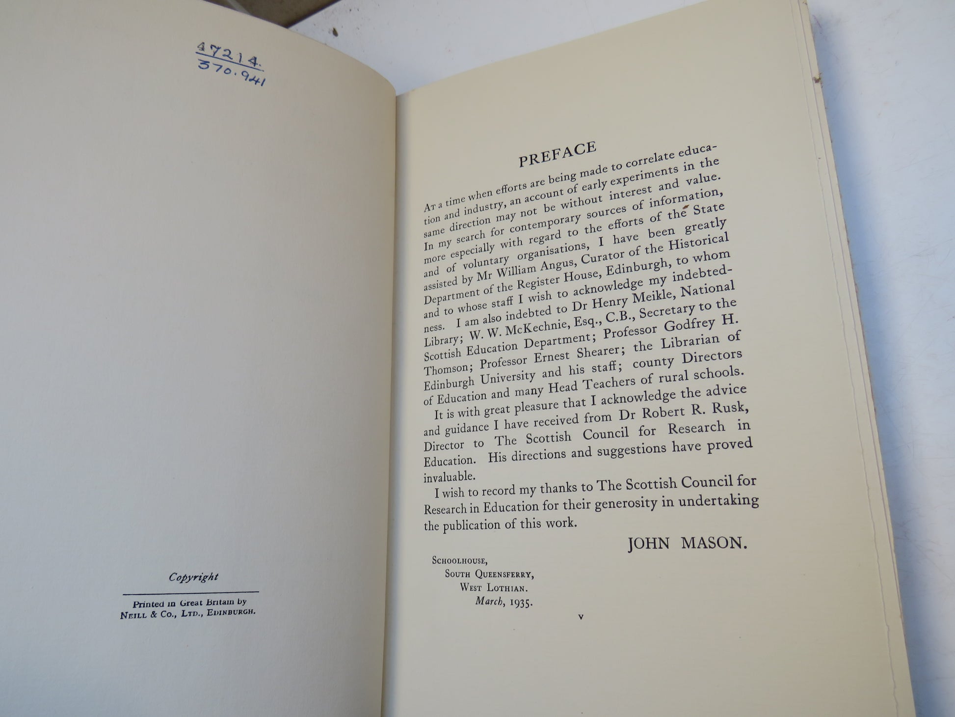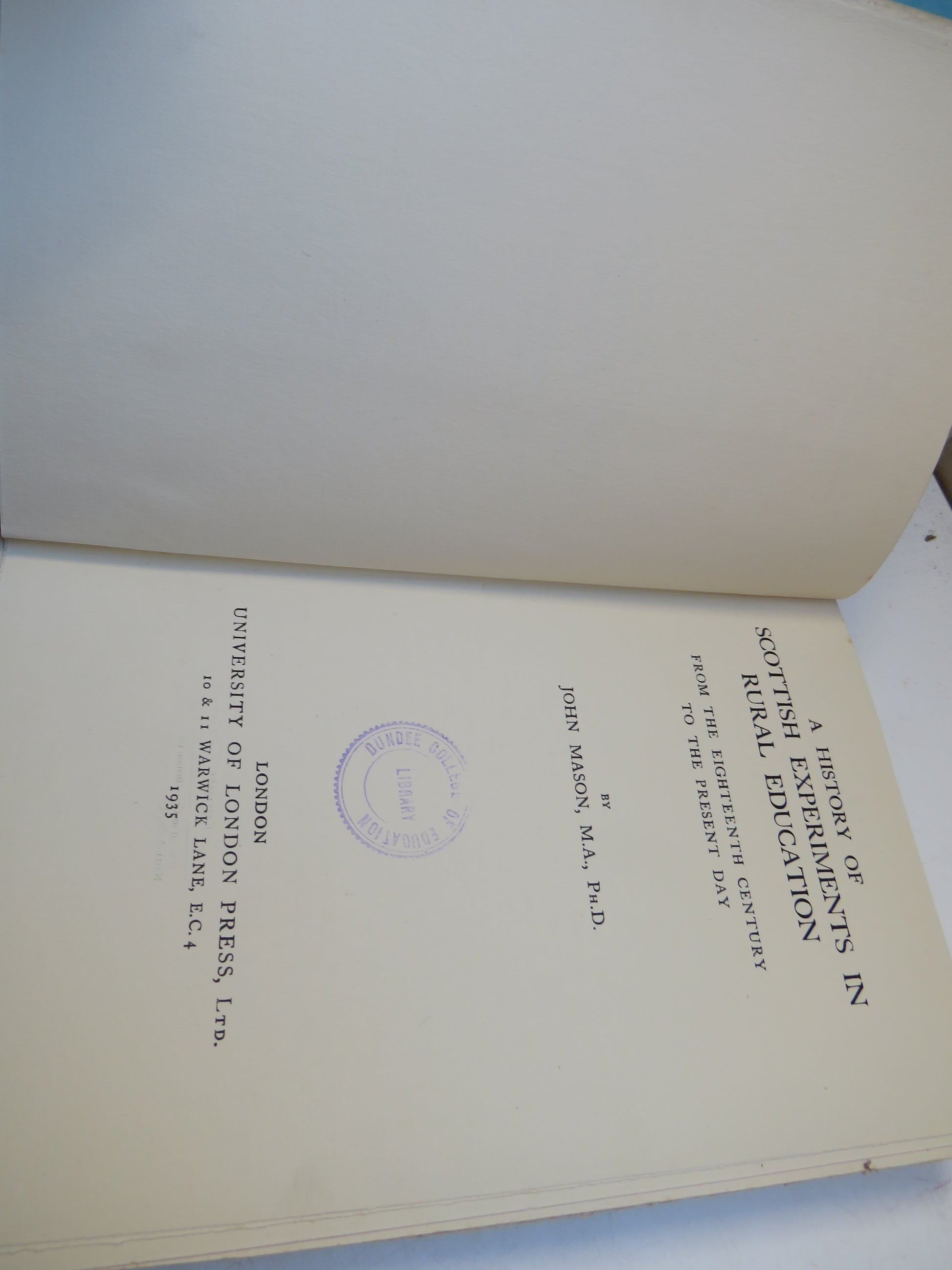 Book For Sale - A History of Scottish Experiments In Rural Education From The Eighteenth Century To The Present Day By John Mason 1935