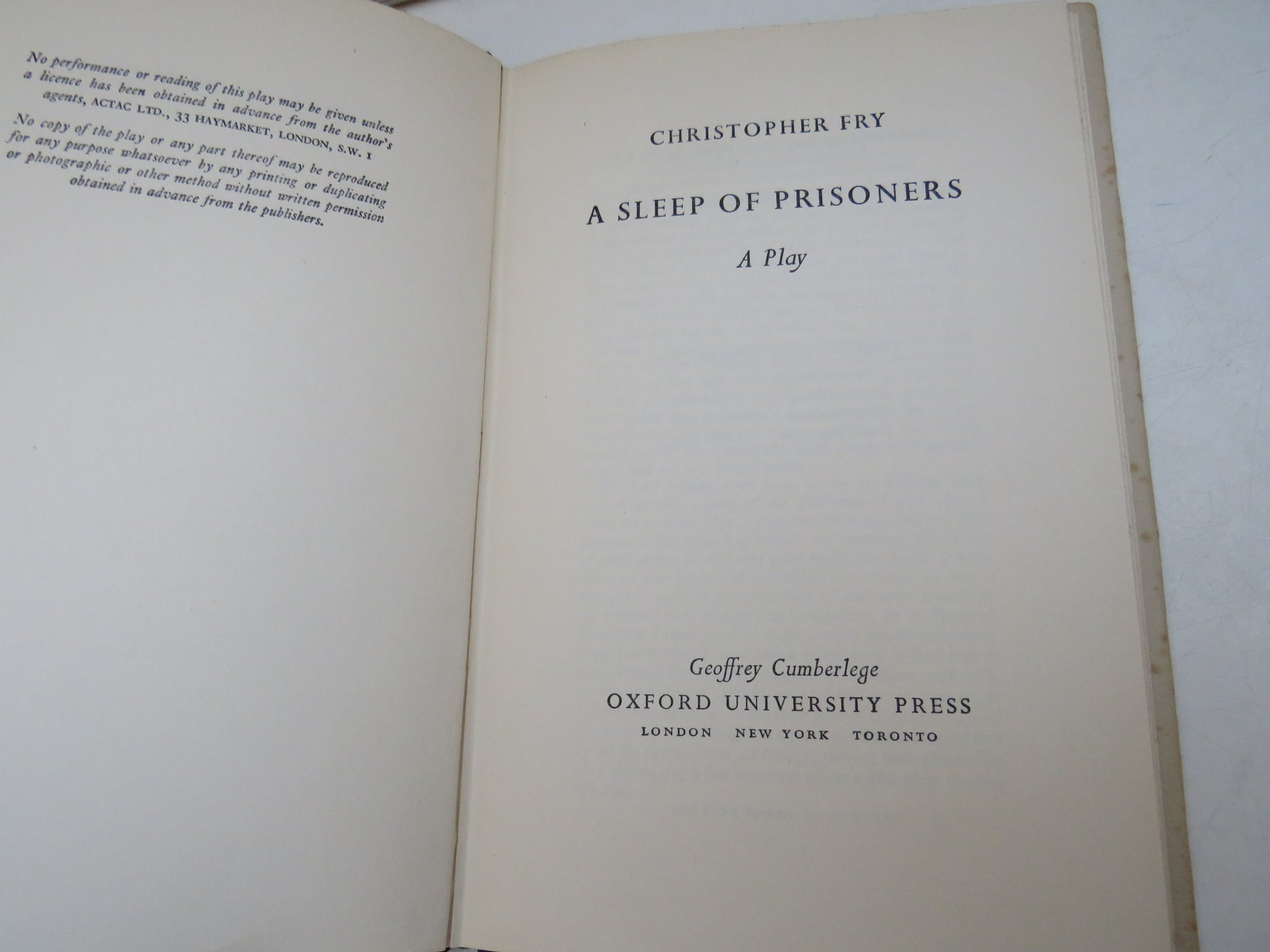 ◆ Book for Sale - A Sleep of Prisoners, A Play, by Christopher Fry, 1952