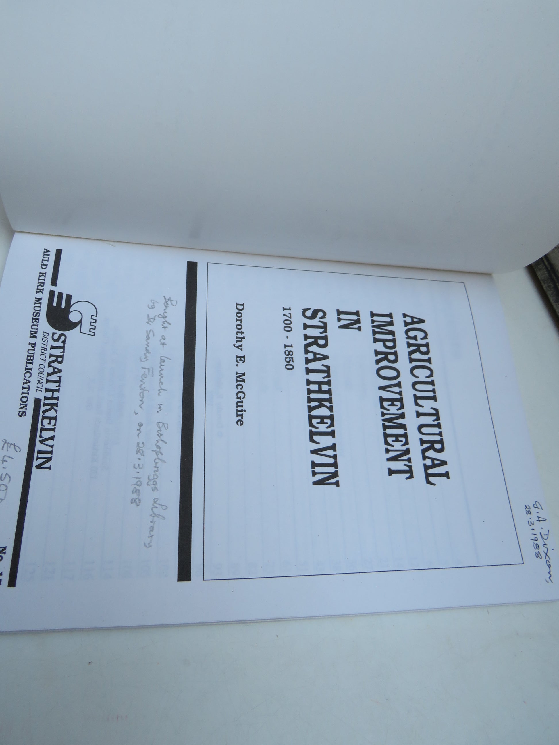 â—† Book for Sale - Agricultural Improvement In Strathkelvin 1700-1850 By Dorothy E. McGuire 1988