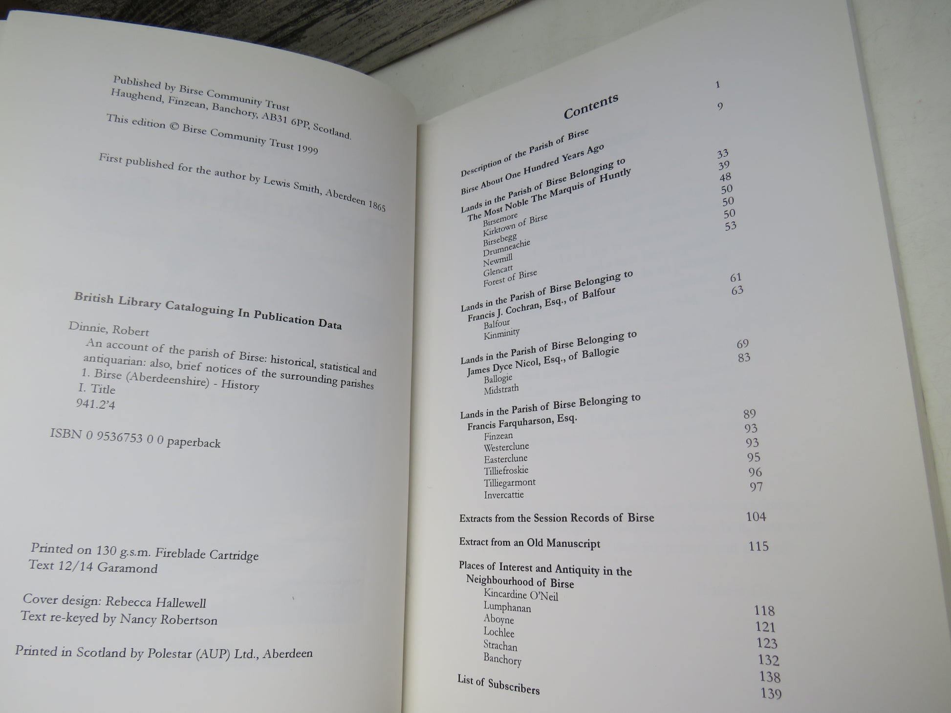 ◆ Book for Sale - An Account of The Parish of Birse Historical, Statistical & Antiquarian; Also Brief Notices of the Surrounding Parishes By Robert Dinnie 1999