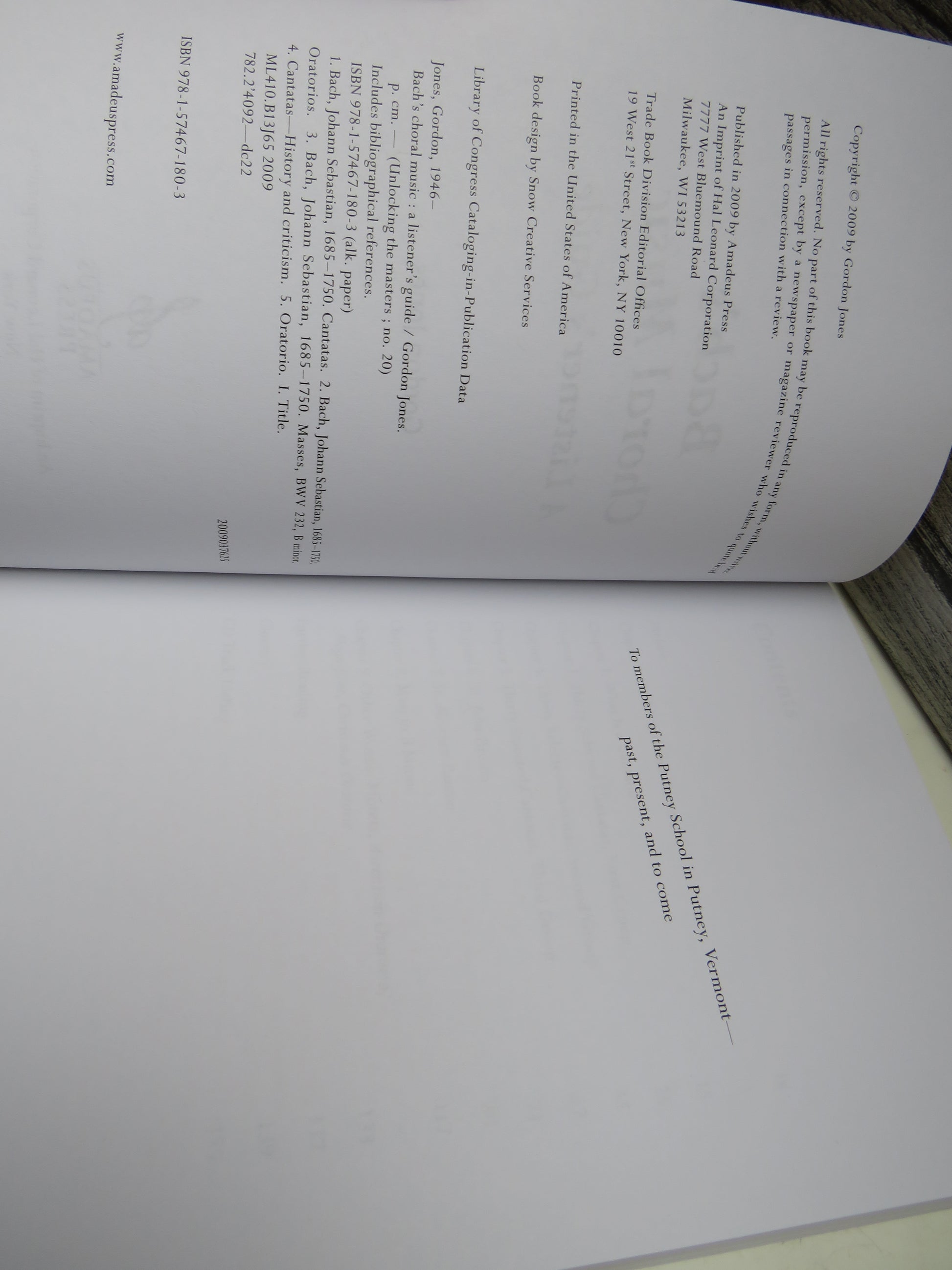 ◆ Book for Sale - Bach's Choral Music A Listener's Guide By Gordon Jones 2009