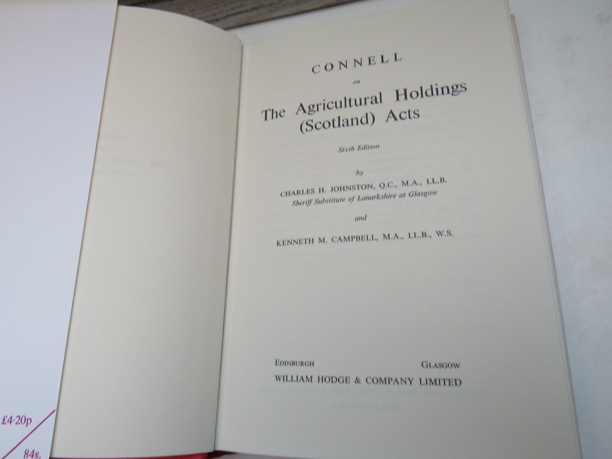 ◆ Book for Sale - Connell On The Argricultural Holdings (Scotland) Acts By Charles H. Johnston and Kenneth M. Campbell 1970