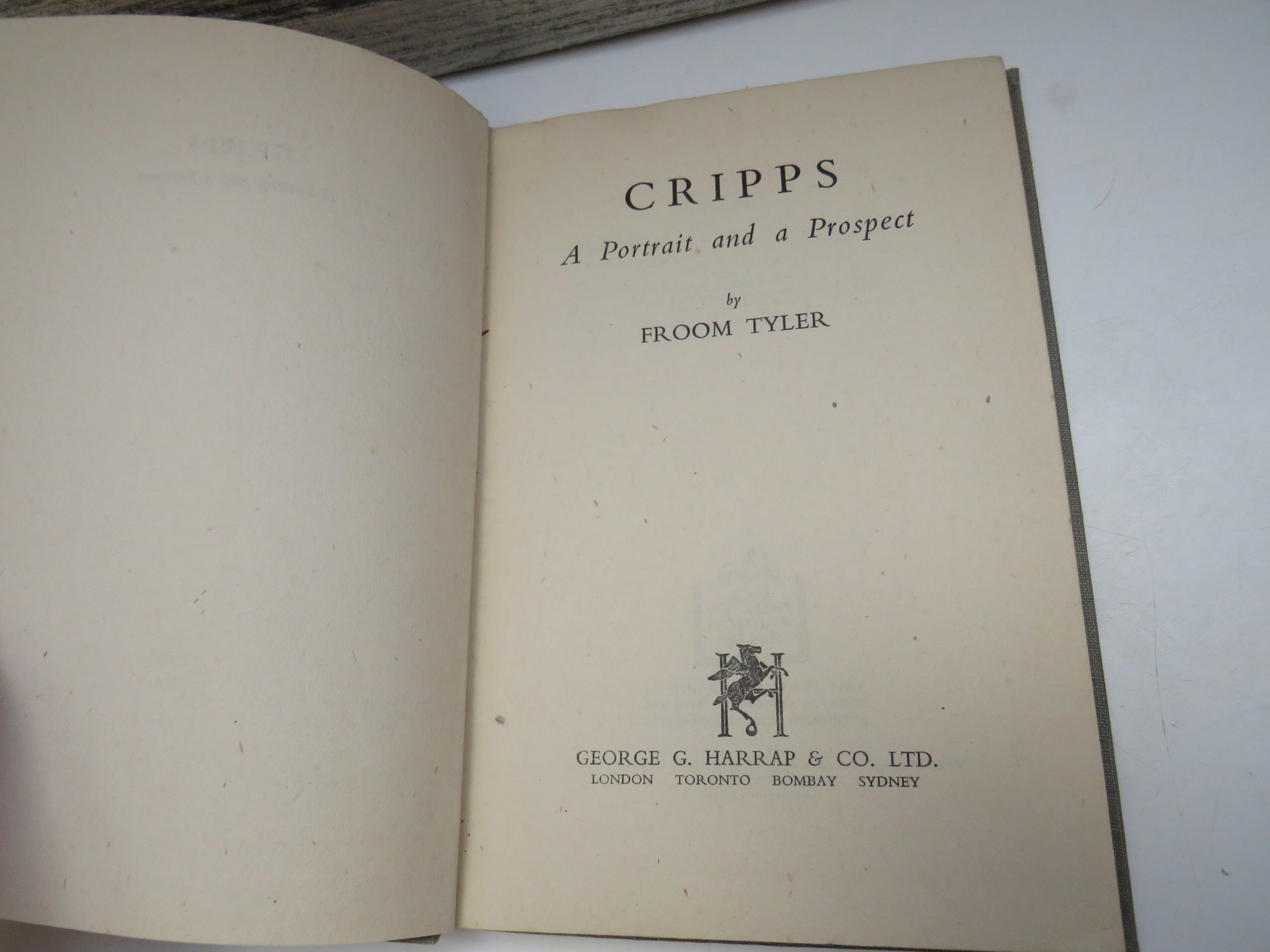 ◆ Book for Sale - Cripps A Portrait and a Prospect By Froom Tyler 1942