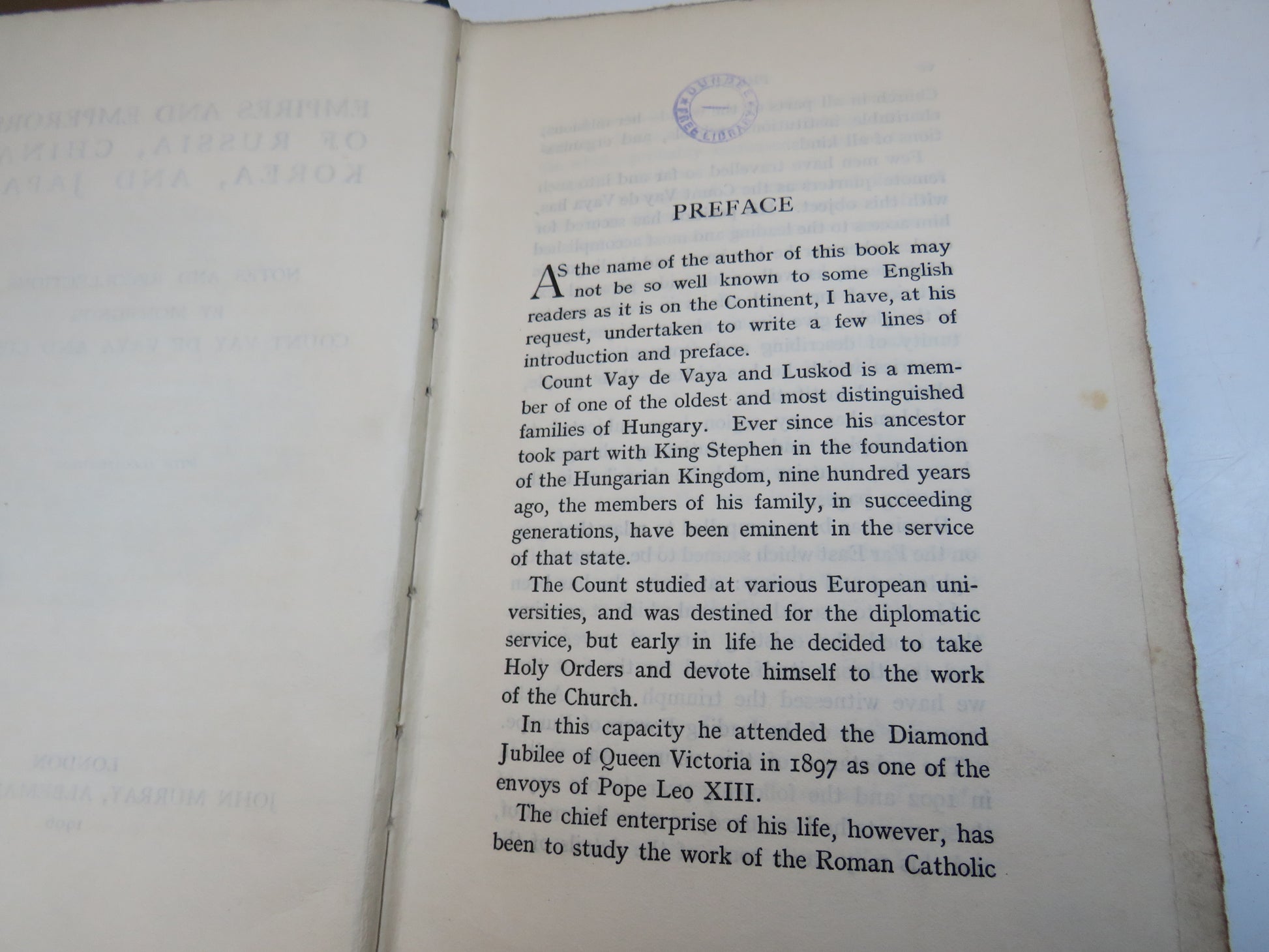 Empires and Emperors of Russia, China, Korea, and Japan Notes and Recollections By Monsignor Count Vay De Vaya and Luskod 1906
