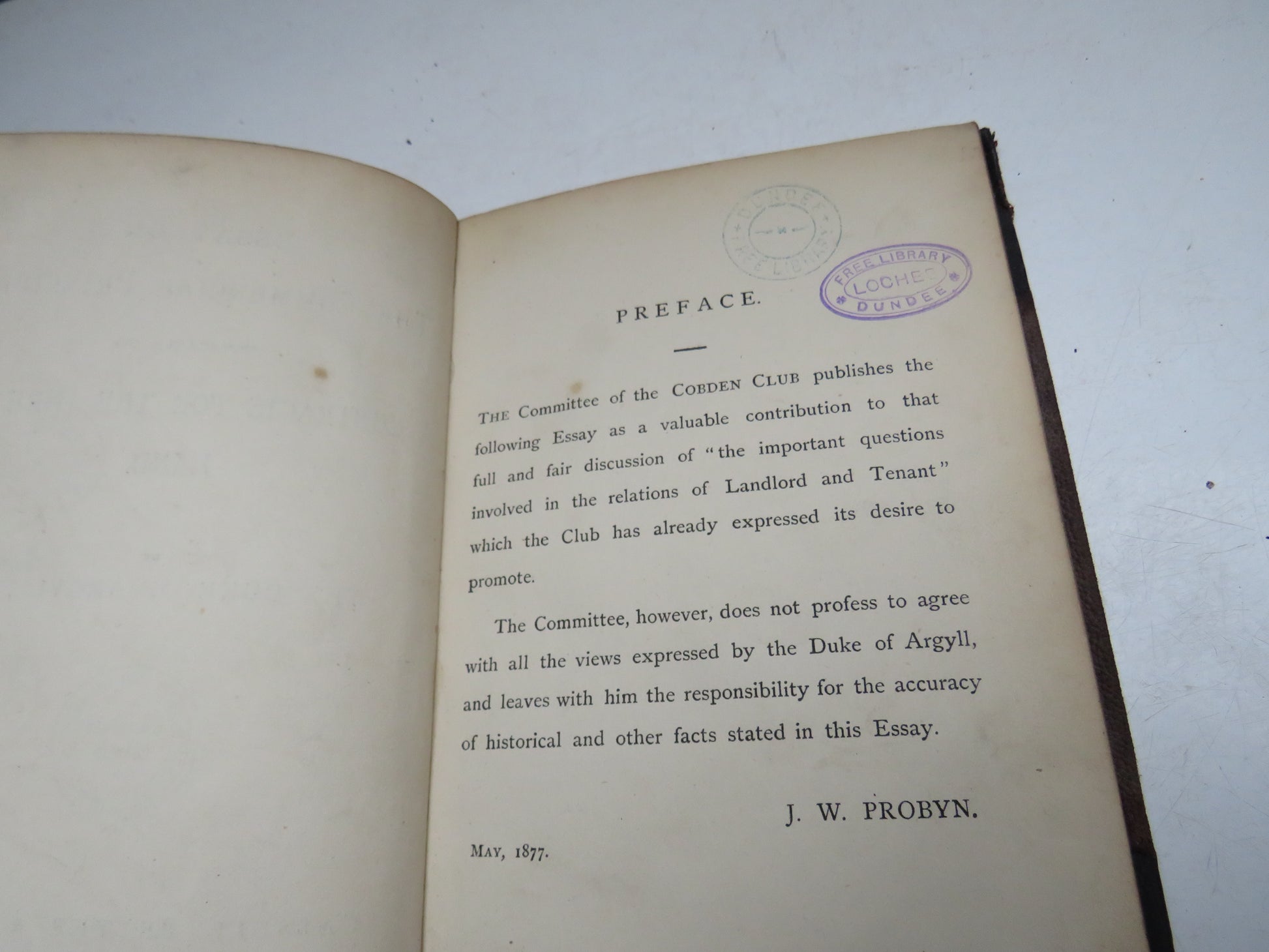 Essay On The Commercial Principles Applicable To Contracts For The Hire of Land By The Duke of Argyll 1877
