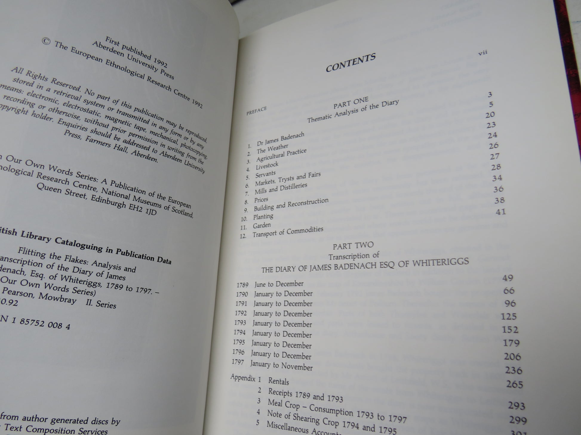 ◆ Book for Sale - Flitting The Flakes The Diary of J. Badenach a Stonehaven Farmer 1789-1797 Edited By Mowbray Pearson 1992