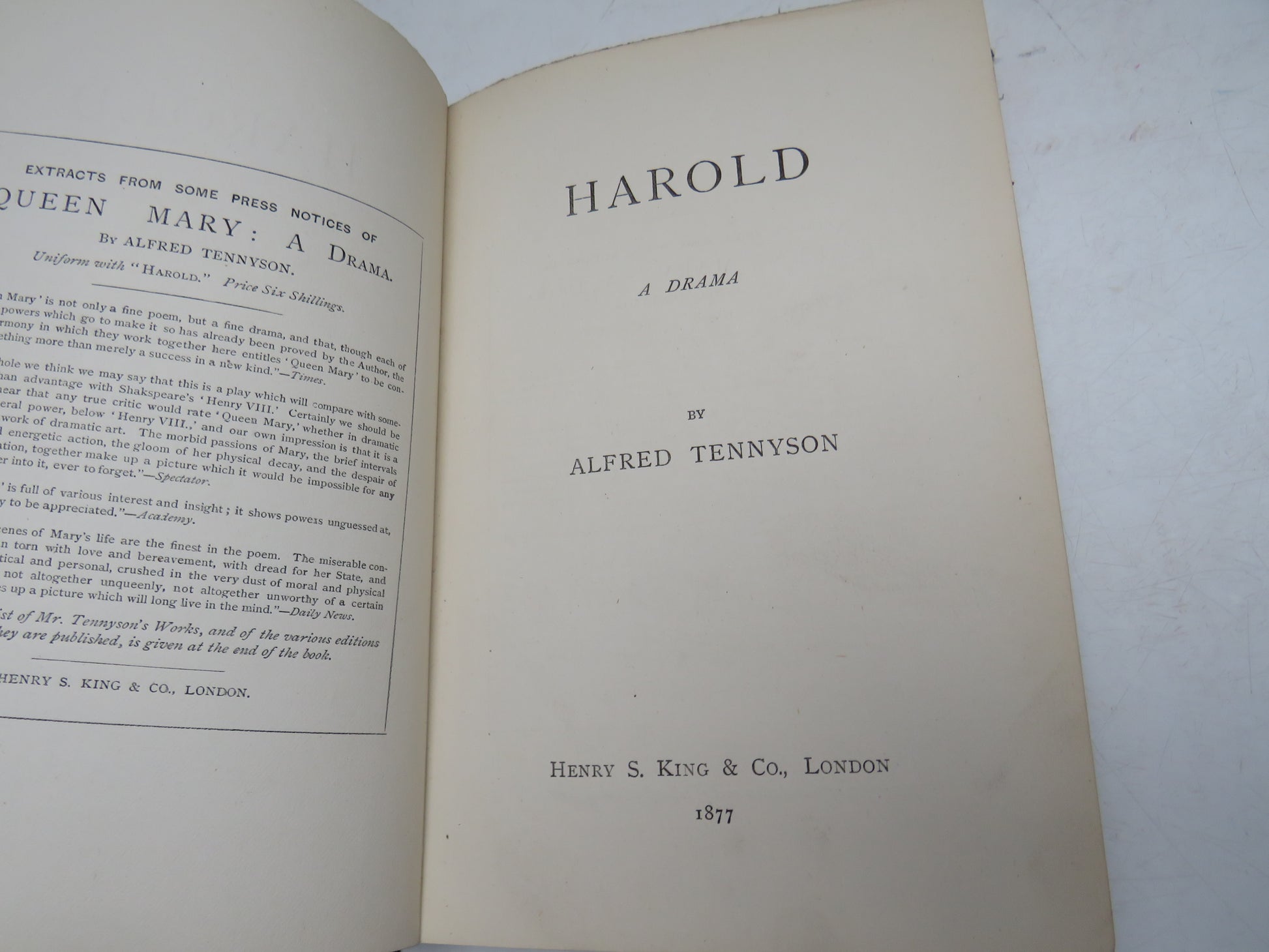 â—† Book for Sale - Harold A Drama By Alfred Tennyson 1877