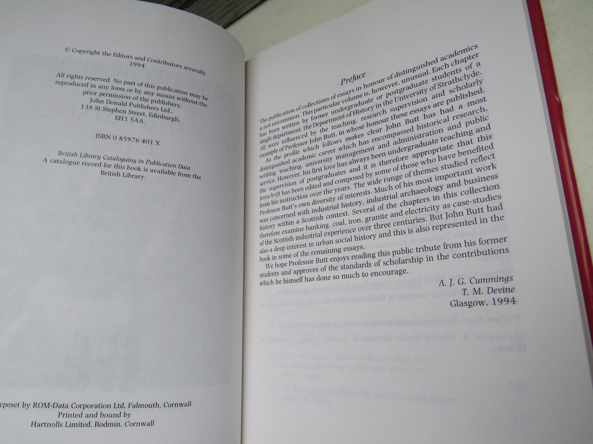 Industry, Business and Society In Scotland Since 1700 Essays Presented To Professor John Butt Edited By A. J. G. Cummings and T. M. Devine 1994