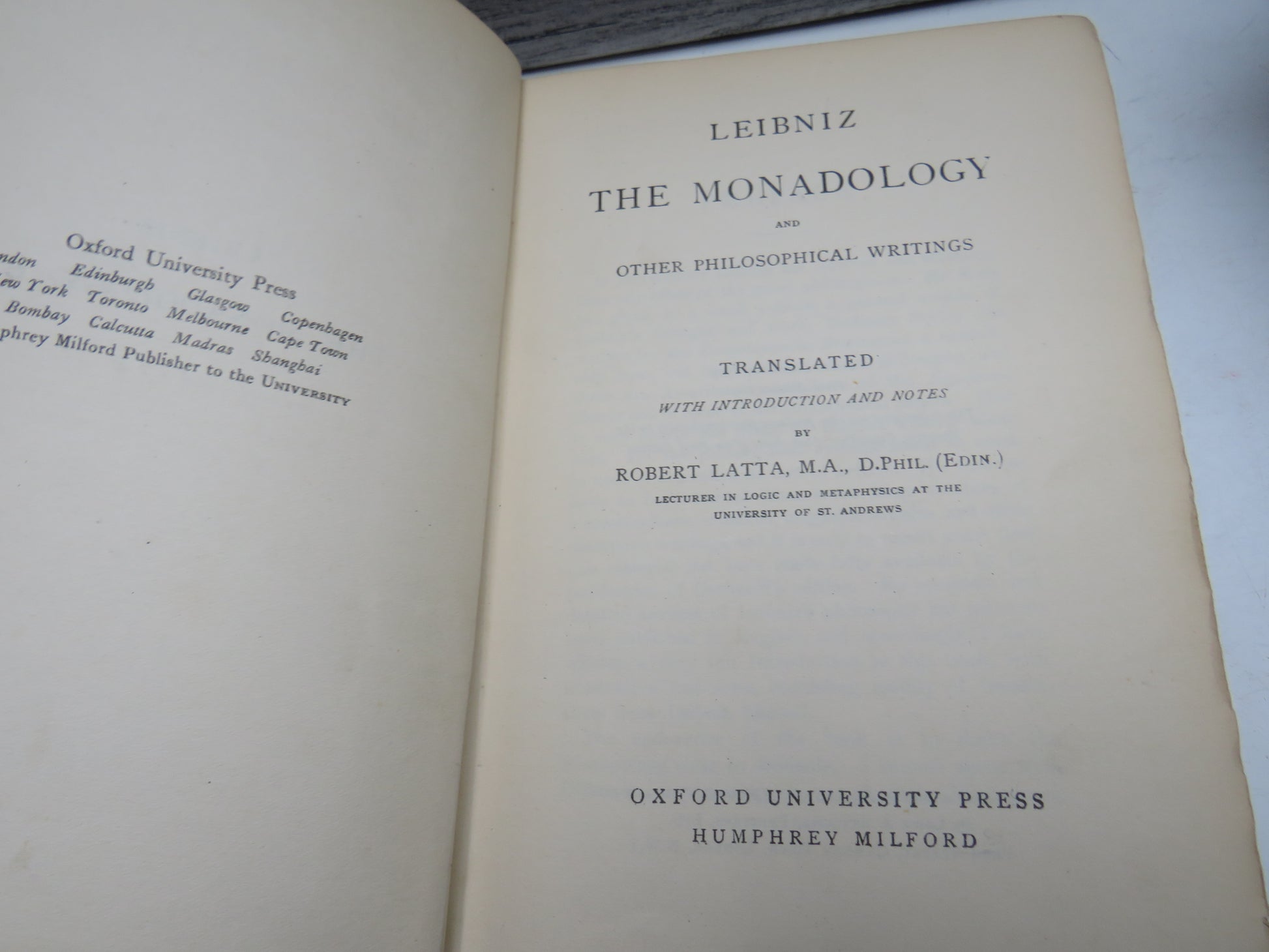 ◆ Book for Sale - Leibniz The Monadology and Other Philosophical Writings Translated By Robert Latta 1925