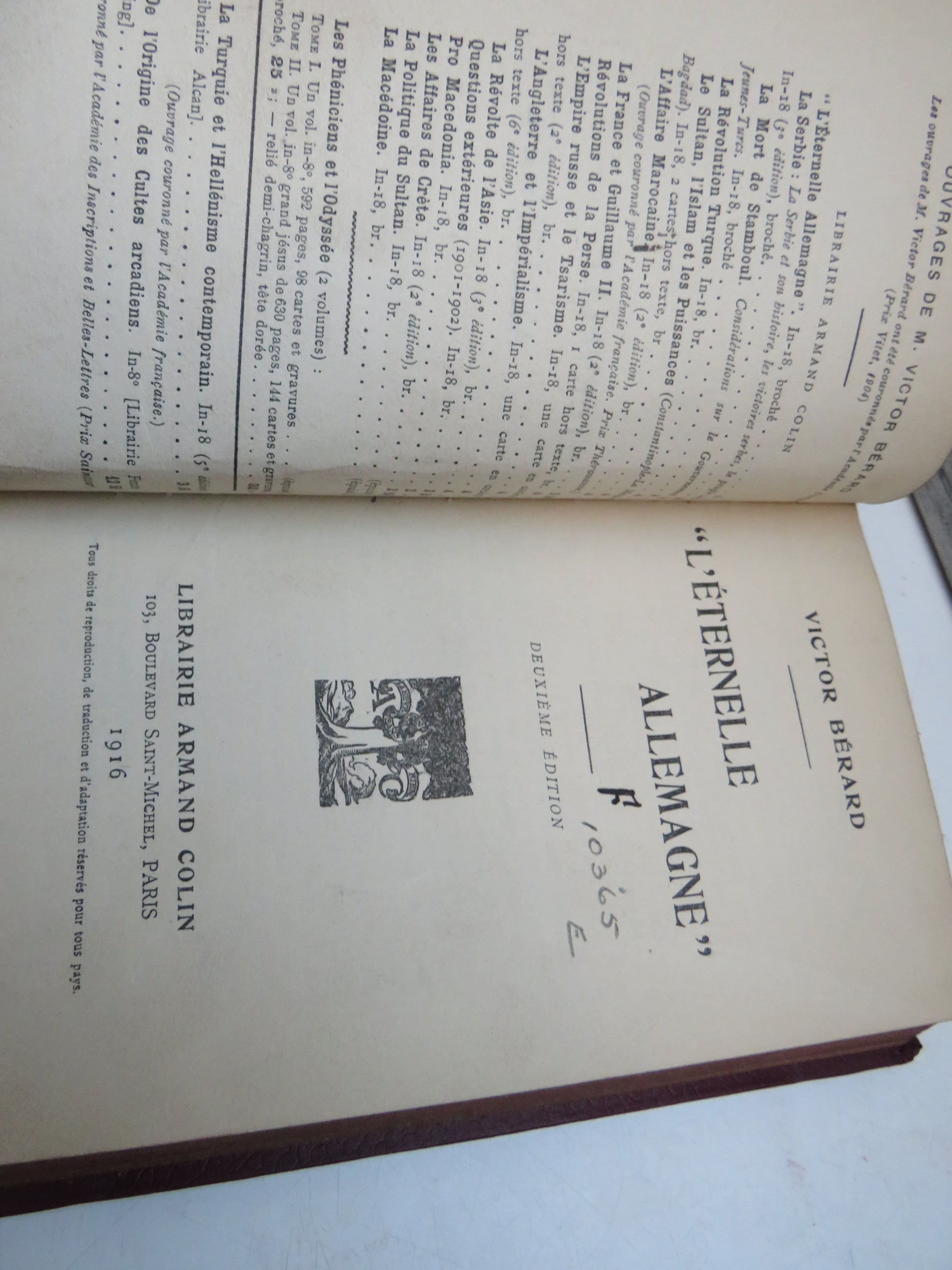 ◆ Book for Sale - "L'Eternelle Allemagne" By Victor Berard 1916 Vintage French Book