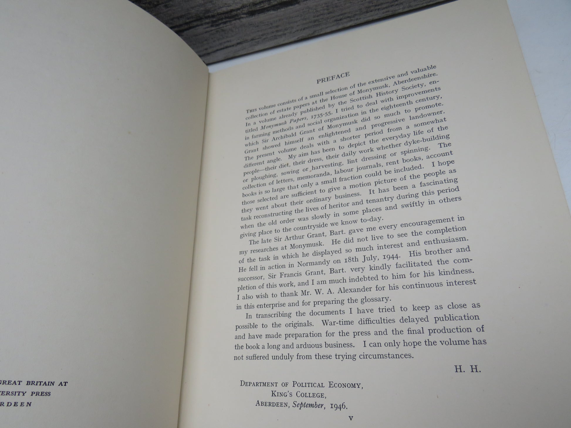 ◆ Book for Sale - Life and Labour On An Aberdeenshire Estate 1735-1750 (Being Selections From The Monymusk Papers) Transcribed and Edited By Henry Hamilton D. Litt 1946 Spalding Club