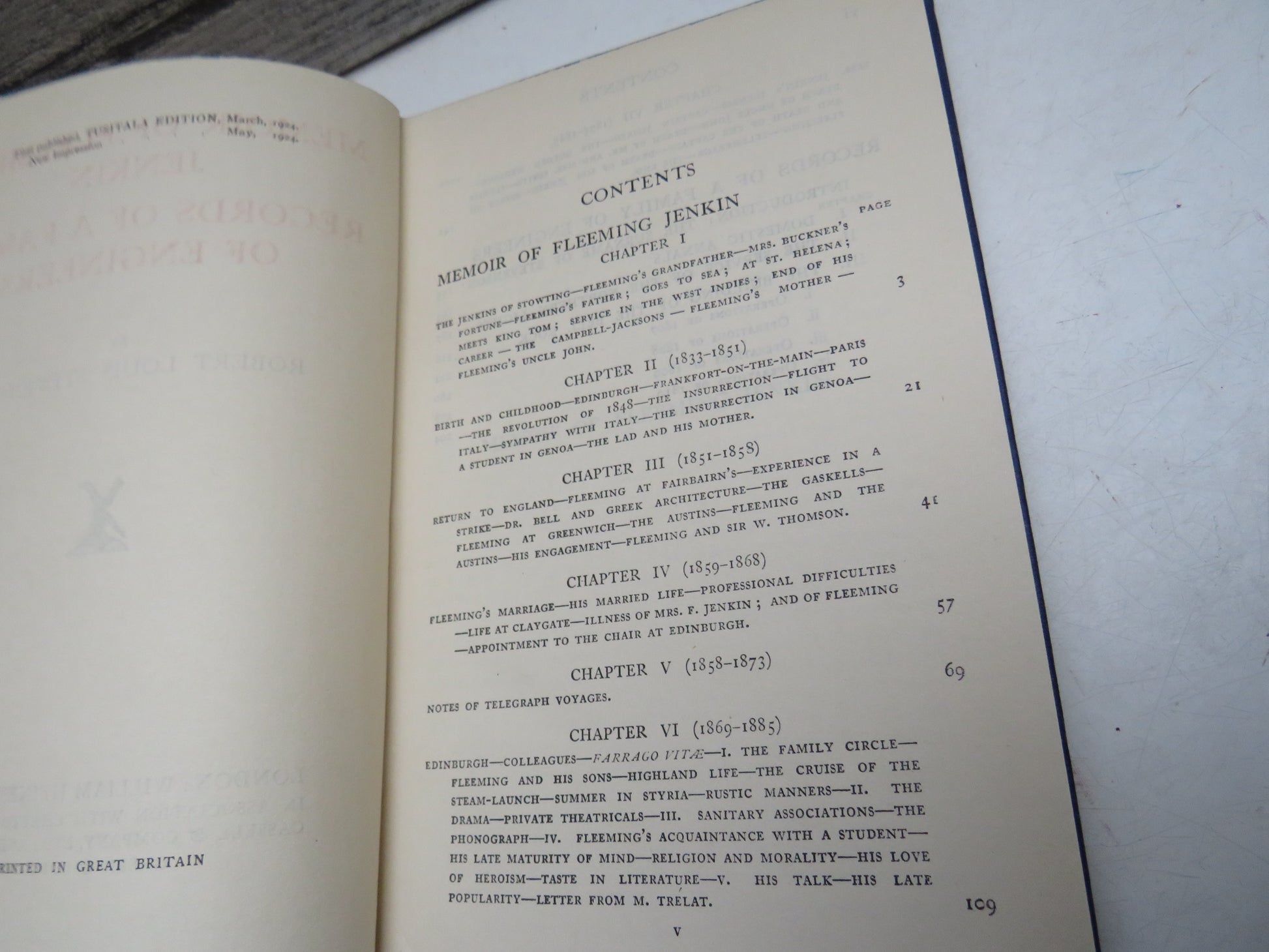 ◆ Book for Sale - Memoir of Fleeming Jenkin Records of a Family of Engineers By Robert Louis Stevenson 1924