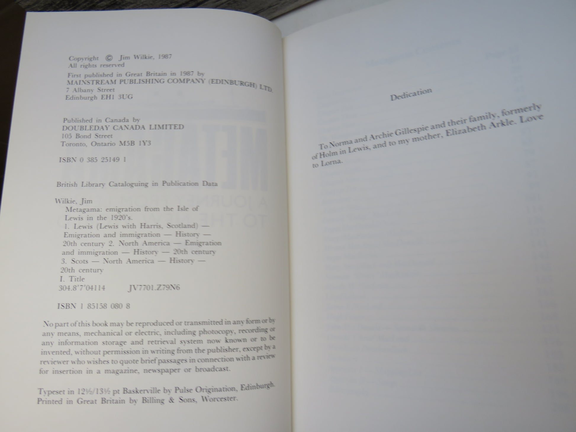 ◆ Book for Sale - Metagama A Journey From Lewis To The New World By Jim Wilkie 1987