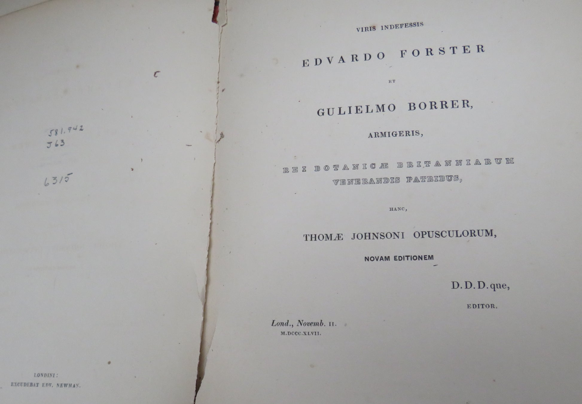 Opuscula Omnia Botanica Thomae Johnsoni 1837 Reprint From 1629 Edition