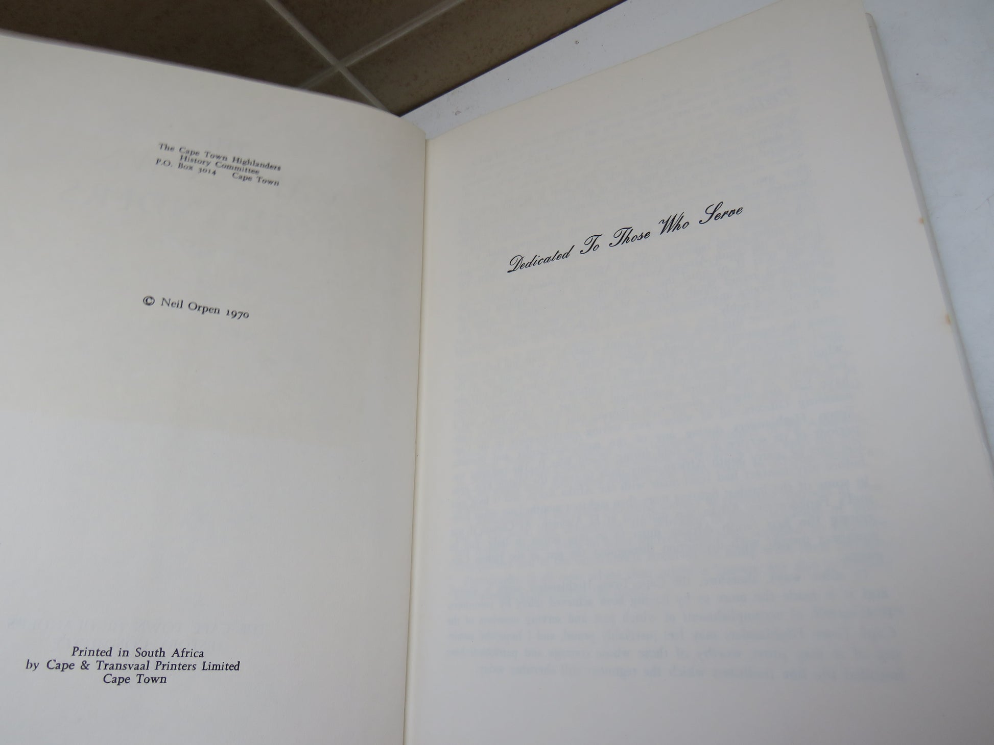 ◆ Book for Sale - The Cape Town Highlanders 1885-1970 By Neil Orpen 1970