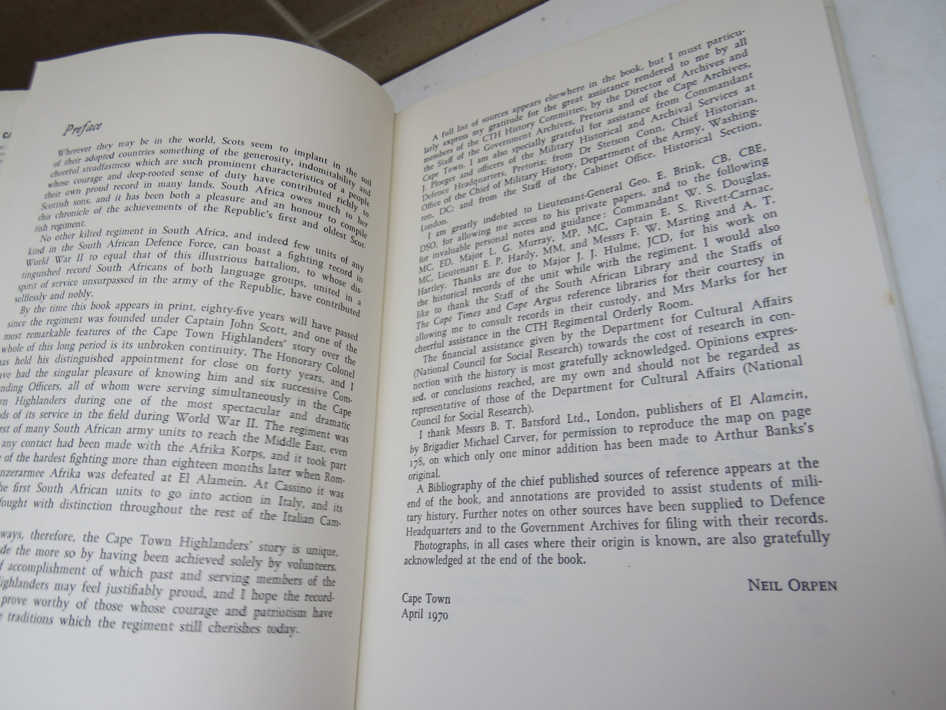 The Cape Town Highlanders 1885-1970 By Neil Orpen 1970