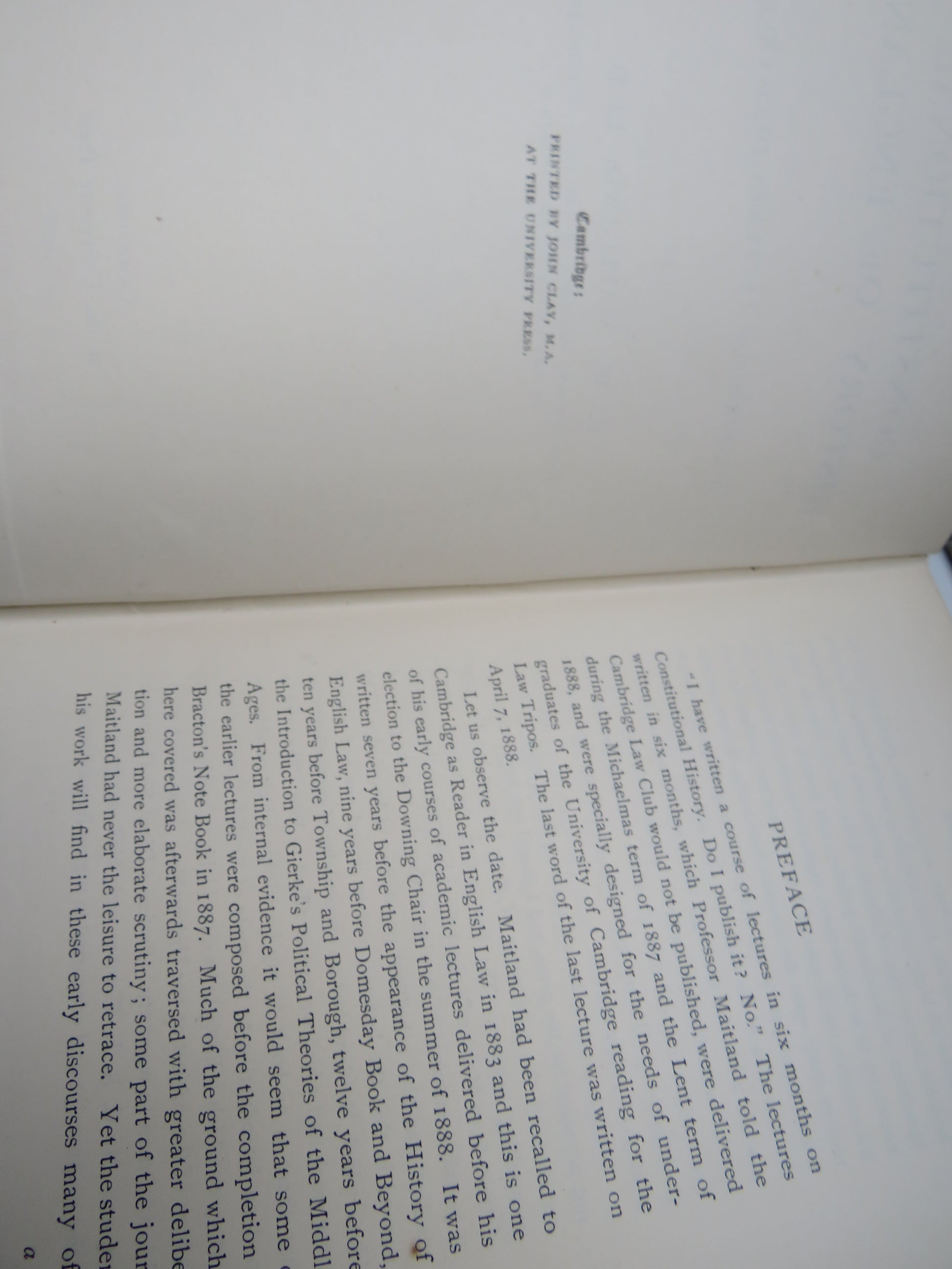 The Constitutional History of England A Course of Lectures Delivered By F.W. Maitland 1908