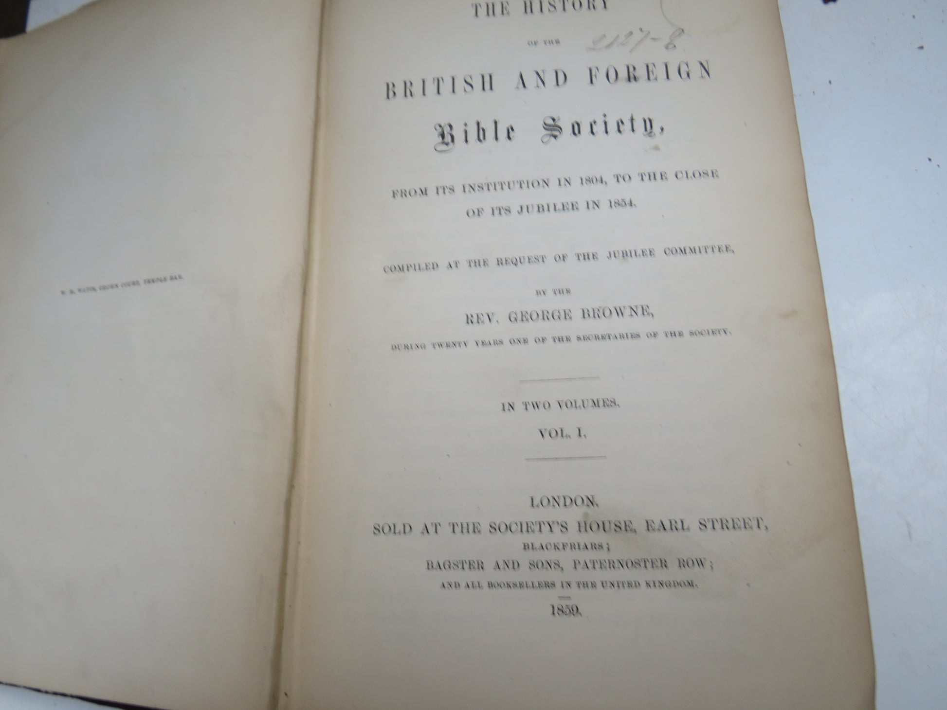 For Sale - The History of the British and Foreign Bible Society From Its Institution In 1804 To The Close Of Its Jubilee In 1854 By The Rev. George Browne Vol 1859