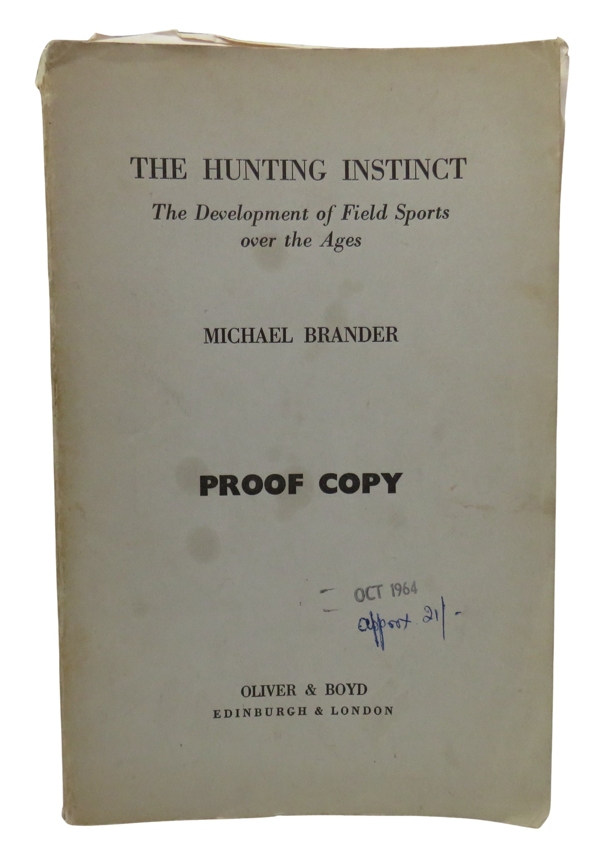 The Hunting Instinct, The Development of Field Sports over the Ages by Michael Brander, Proof Copy, 1964