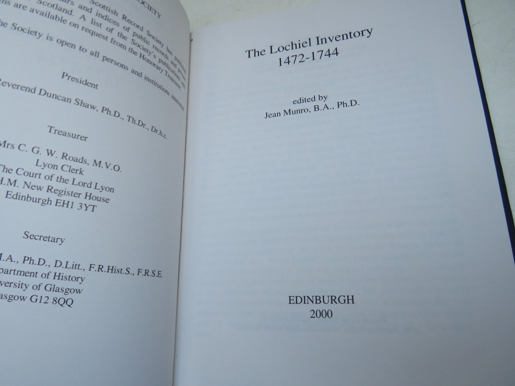 The Lochiel Inventory 1472-1744 Edited By Jean Munro 2000