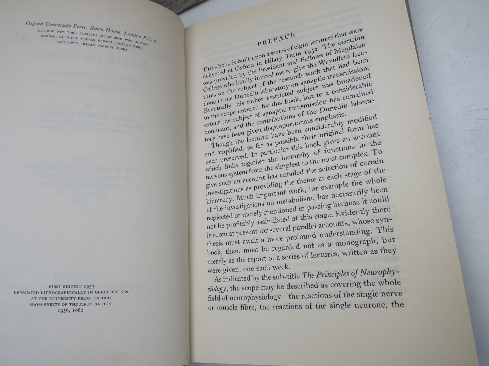 ◆ Book for Sale - The Neurophysiological Basis of Mind The Principles of Neurophysiology By John Carew Eccles 1960