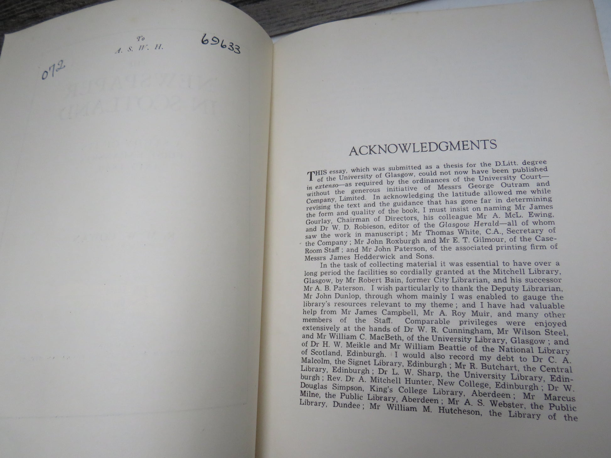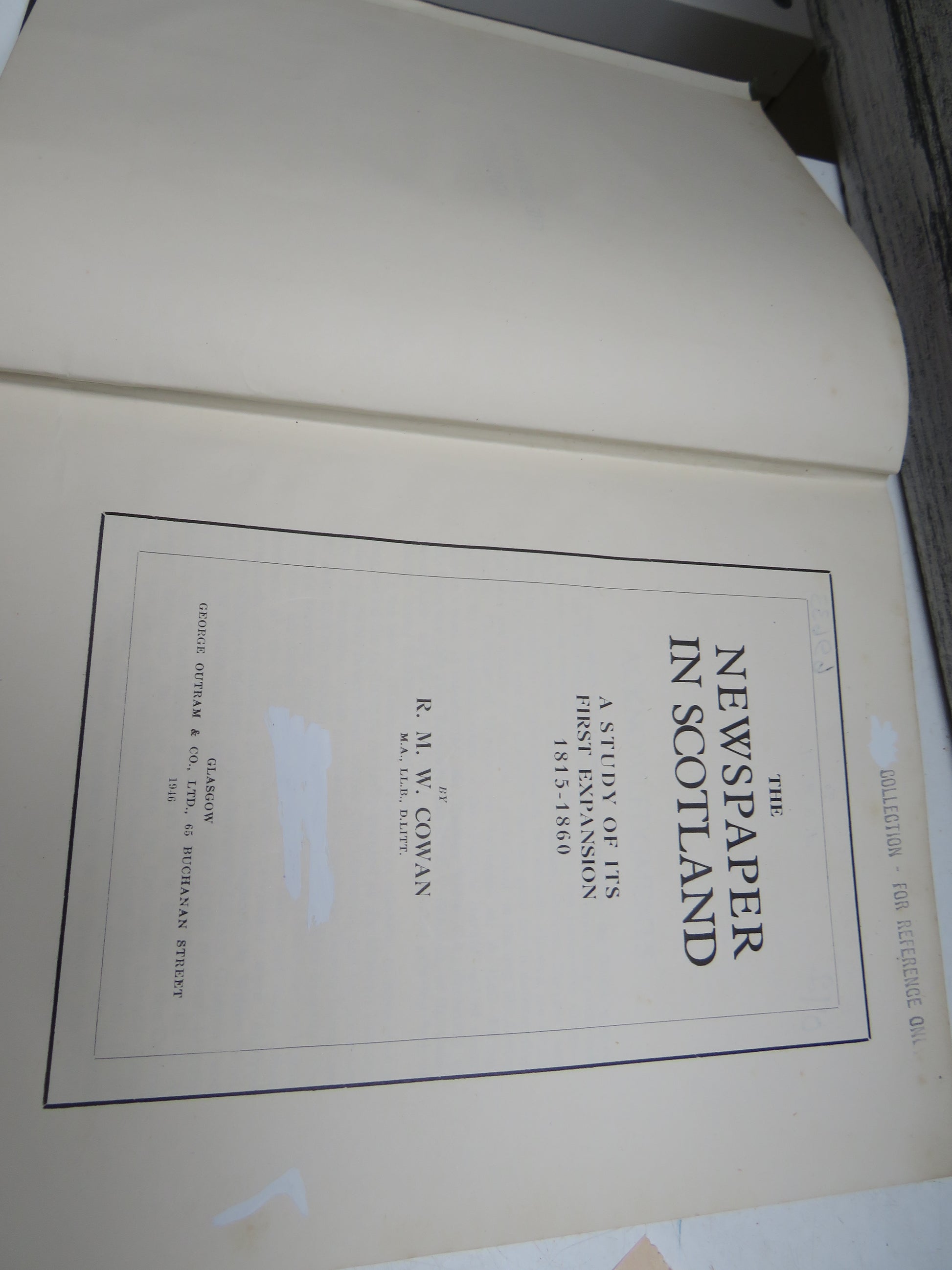 ◆ Book for Sale - The Newspaper In Scotland A Study of Its First Expansion 1815-1860 By R. M. W. Cowan 1946