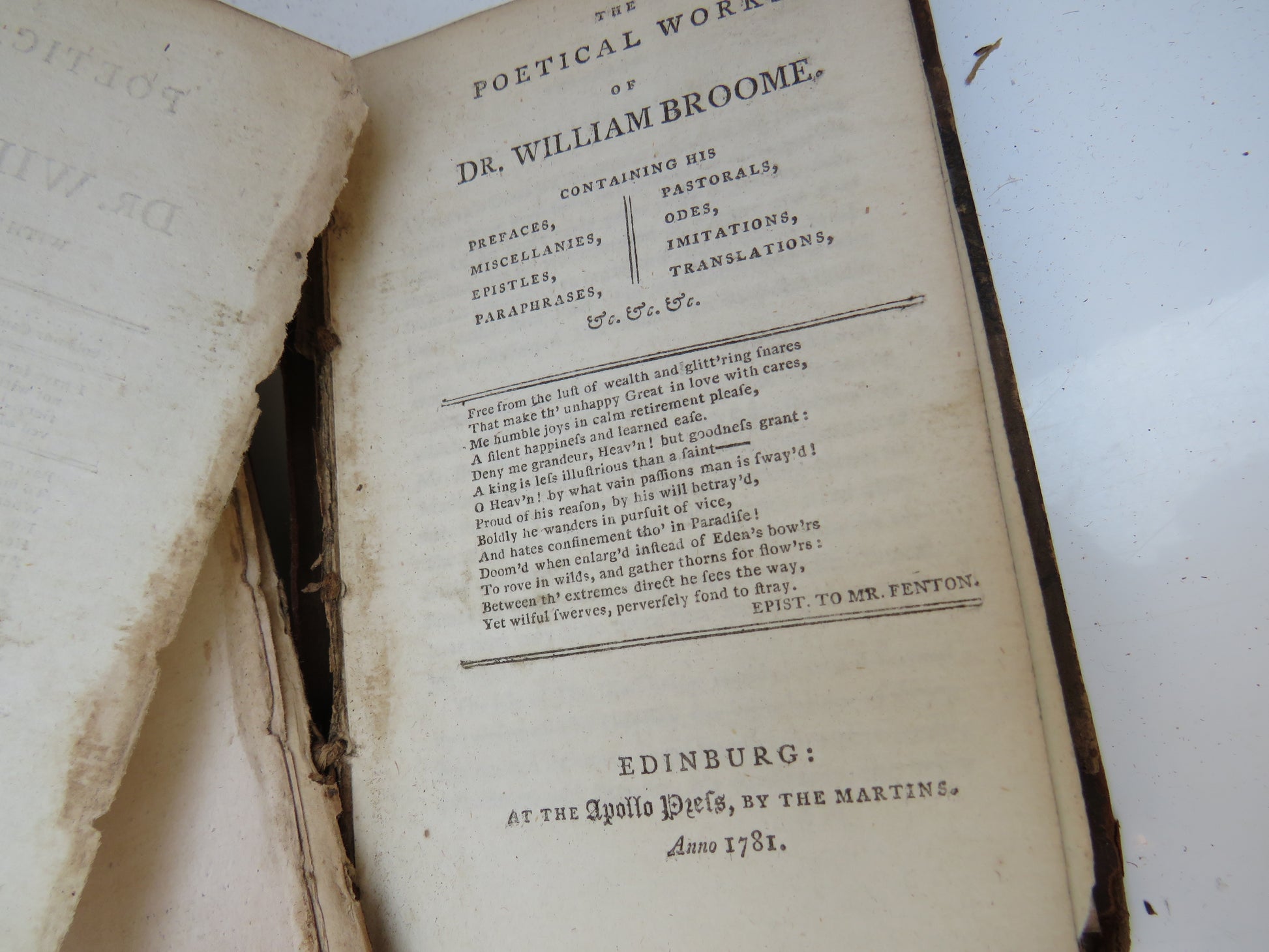 For Sale - The Poetical of Dr. Will. Broome & Lord Lyttelton 1781