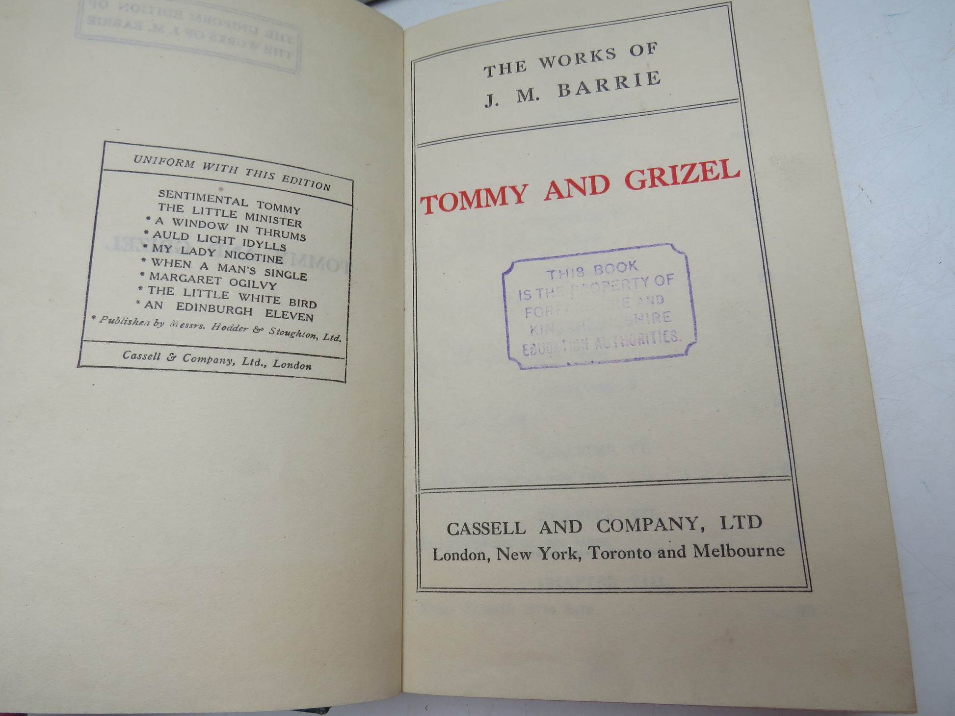 ◆ Book for Sale - The Works of J. M. Barrie Tommy and Grizel